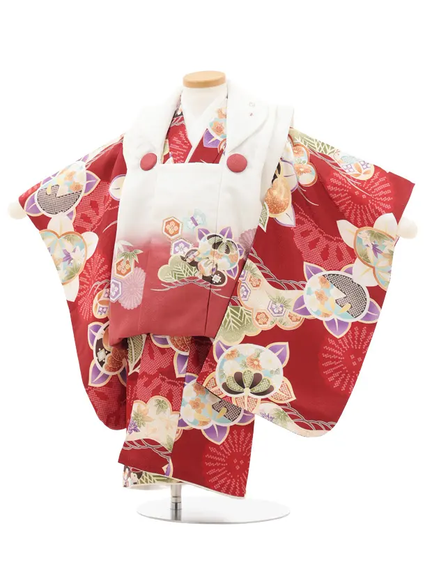 七五三レンタル(2歳男児被布)O240 オフ白赤ぼかし×赤 松橘