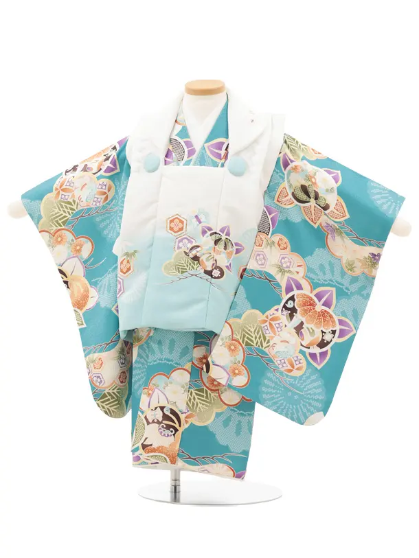 七五三レンタル(2歳男児被布)W500 水色 犬張り子×ブルーぼかし松竹梅