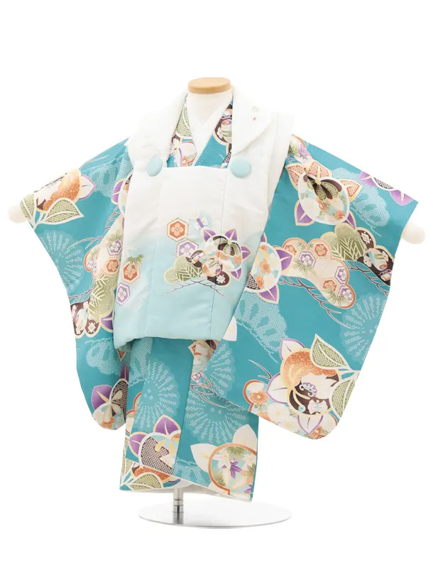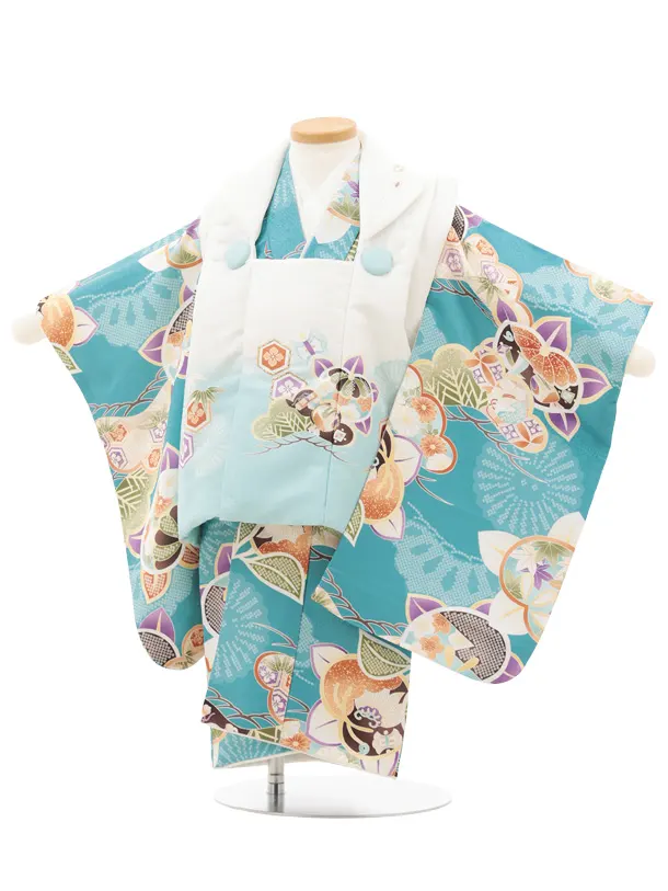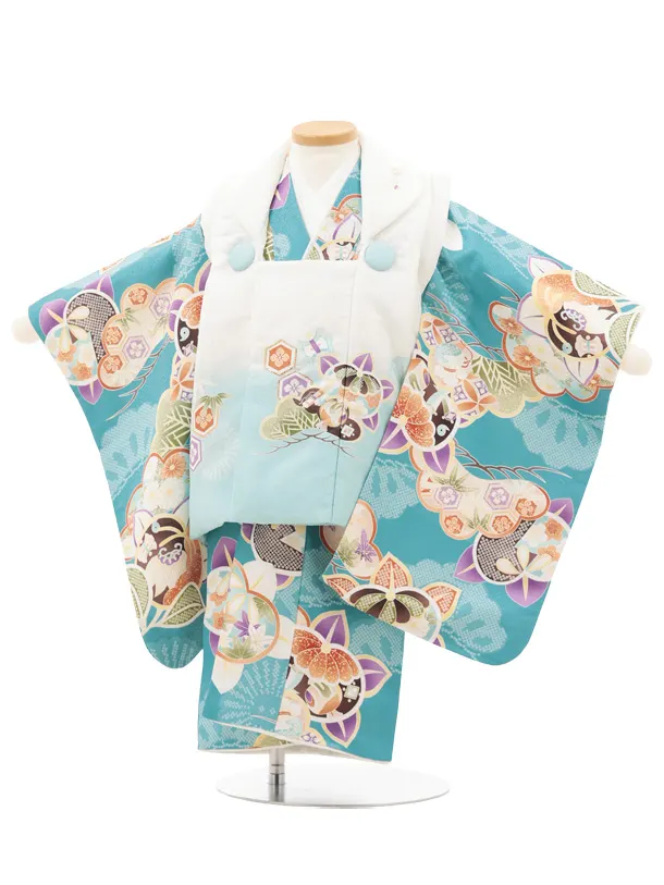 七五三レンタル(2歳男児被布)O248 オフ白 水色ぼかし×ブルーグリーン 松橘