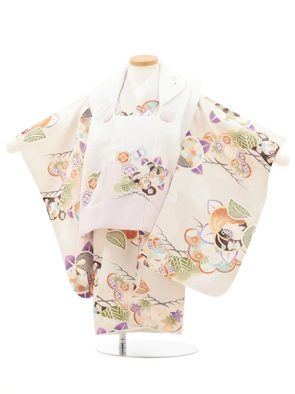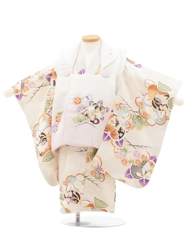 七五三レンタル(2歳男児被布)O251 オフ白 薄パープルぼかし×ベージュ松橘