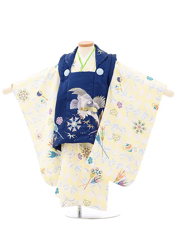 七五三レンタル(2歳男児被布)2691紺地矢羽根鷹xクリーム白おもちゃ