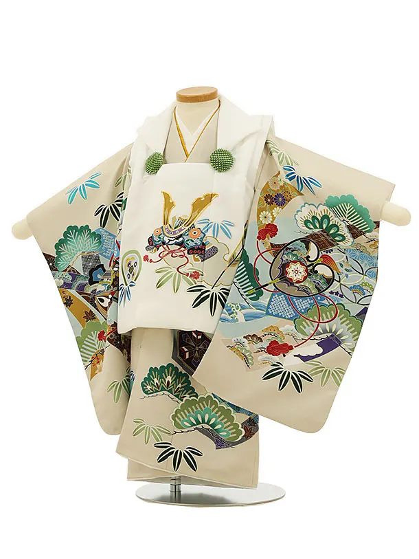 七五三レンタル(2歳男児被布)2807ベージュ兜xベージュ吉祥文様