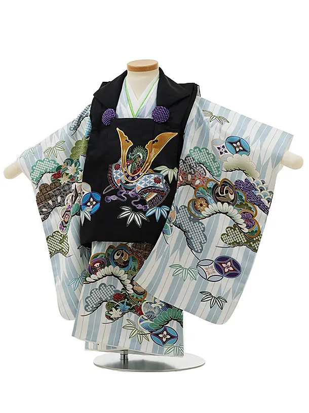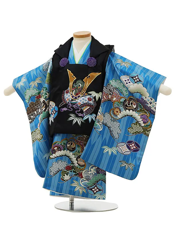 七五三レンタル(2歳男児被布)2980黒兜×水色矢柄吉祥文様