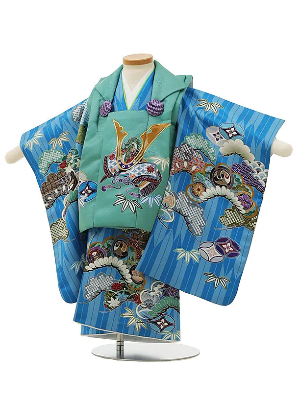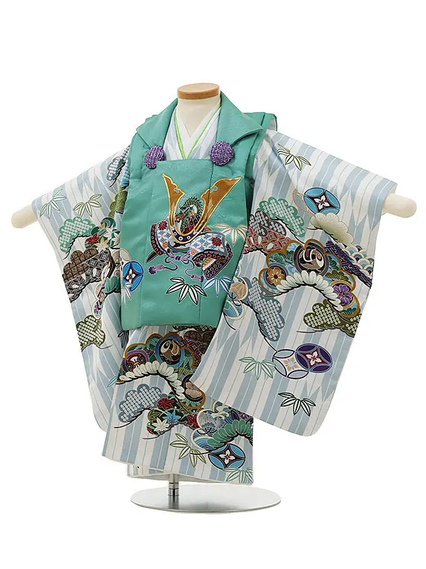 七五三レンタル(2歳男児被布)2981グリーン兜×水色矢柄吉祥文様
