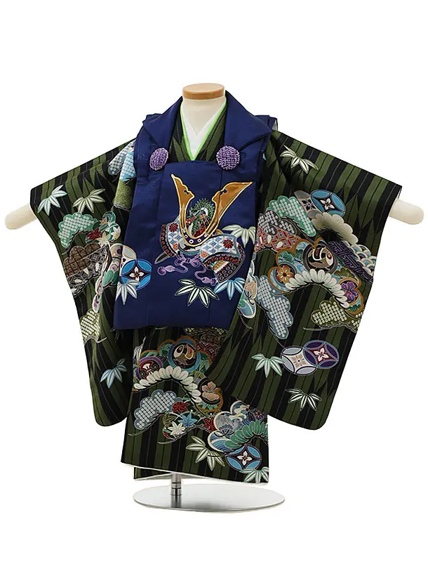 七五三レンタル(2歳男児被布)2965紺兜×グリーン矢柄吉祥文様