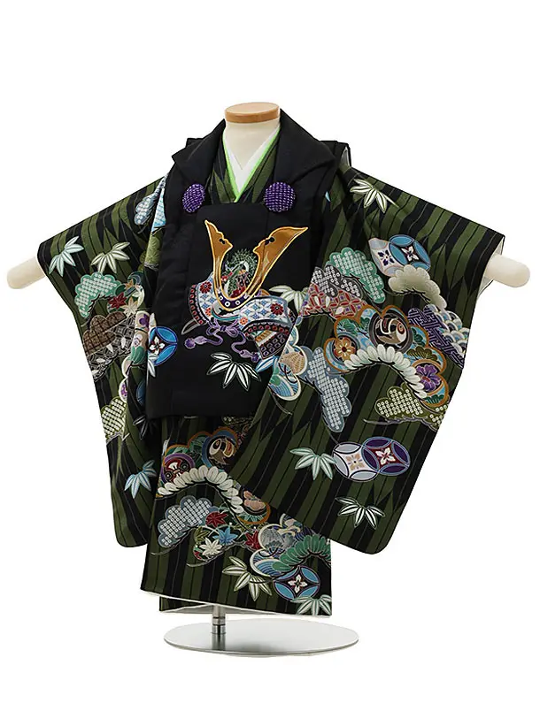 七五三レンタル(2歳男児被布)2967黒兜×グリーン矢柄吉祥文様