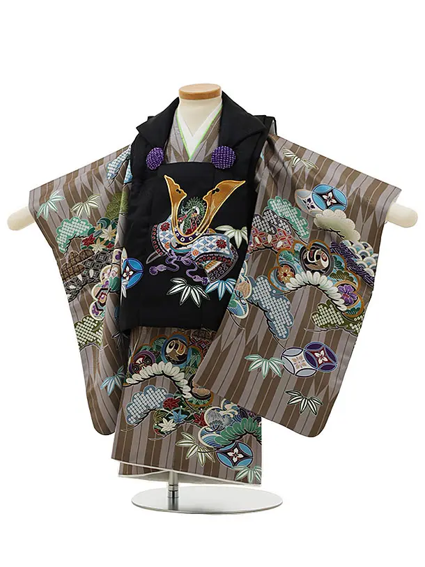 七五三レンタル(2歳男児被布)2962黒兜×グレー矢柄吉祥文様