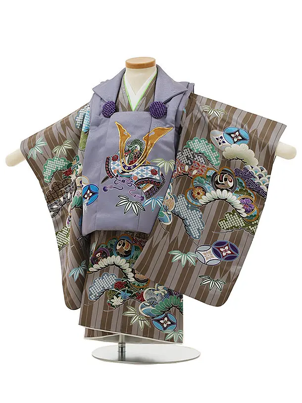 七五三レンタル(2歳男児被布)2969パープルグレー兜×金茶矢柄吉祥文様