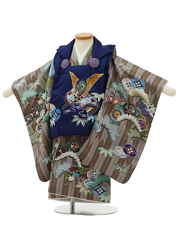 七五三レンタル(2歳男児被布)2970紺兜×金茶矢柄吉祥文様