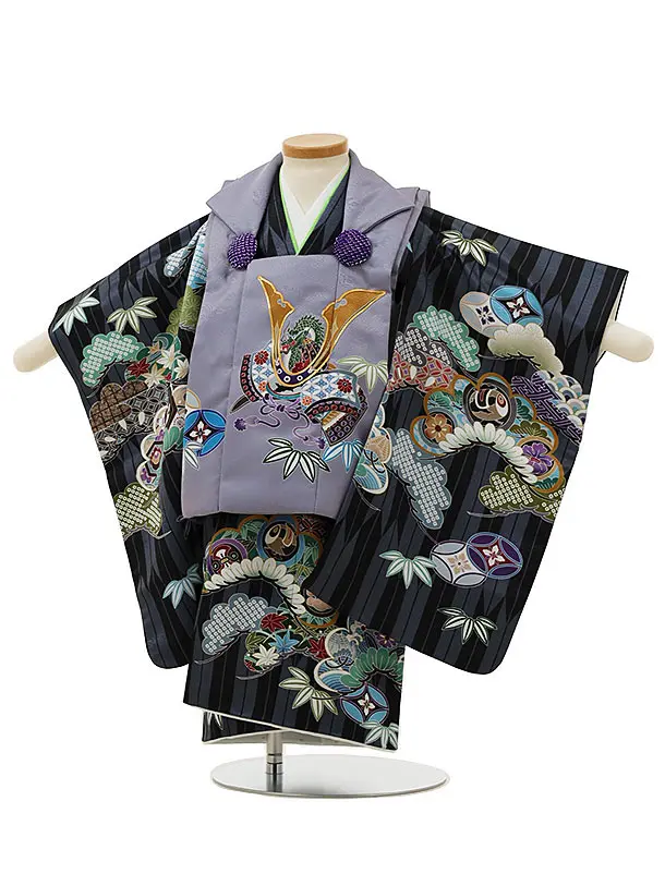 七五三レンタル(2歳男児被布)2974パープルグレー兜×黒矢柄吉祥文様