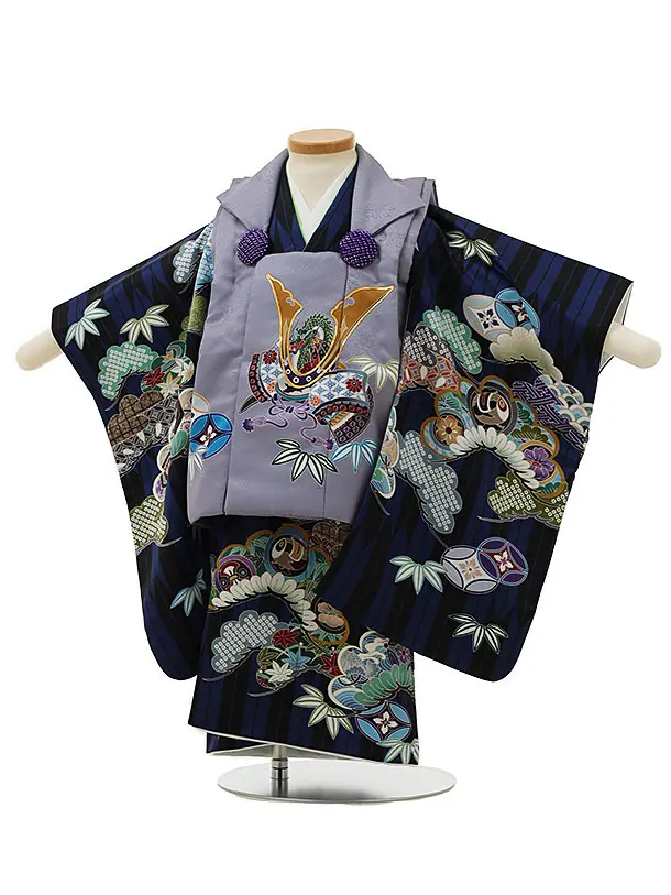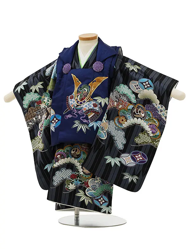 七五三レンタル(2歳男児被布)2975紺兜×黒矢柄吉祥文様