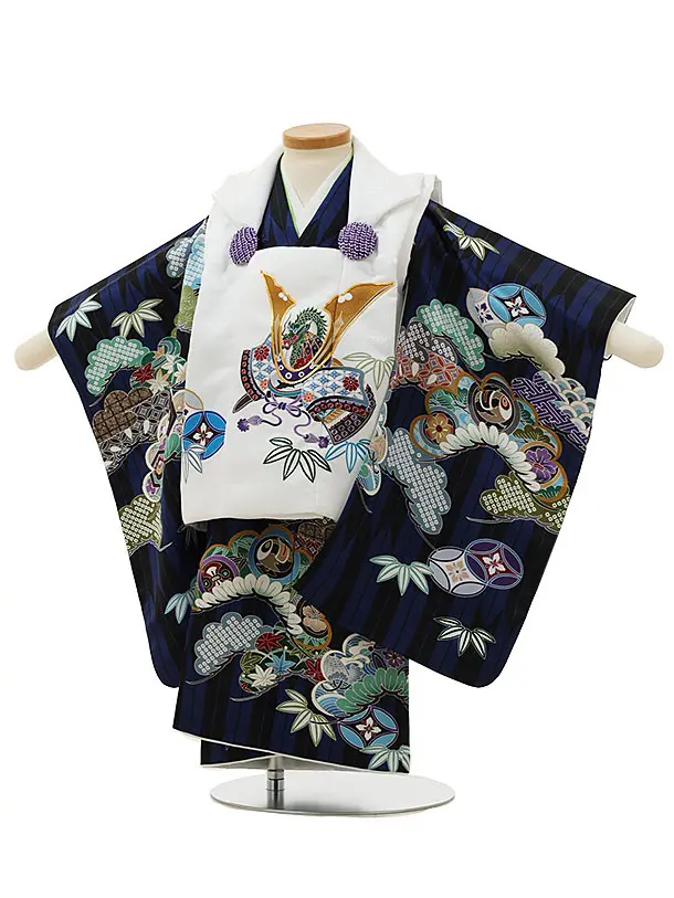 七五三レンタル(2歳男児被布)2610紺地かぶと x 白地吉祥文様