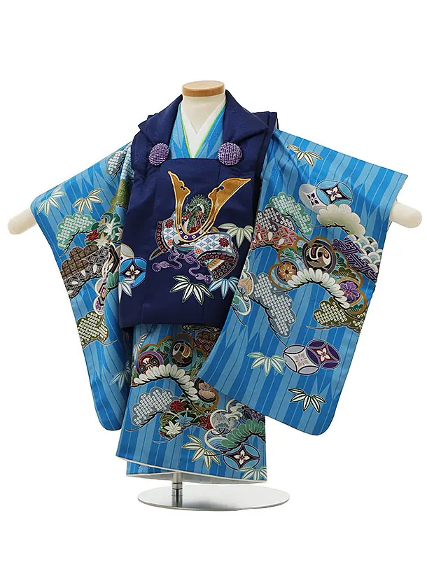 七五三レンタル(2歳男児被布)2982紺兜×水色矢柄吉祥文様