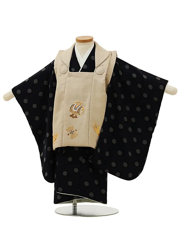 七五三レンタル(2歳男児被布)2989ベージュ小槌刺繍×ネイビードット