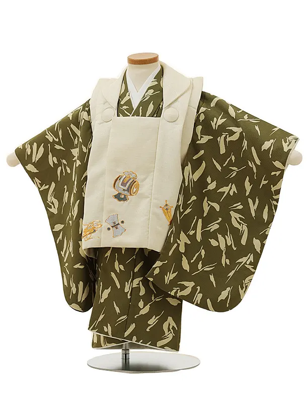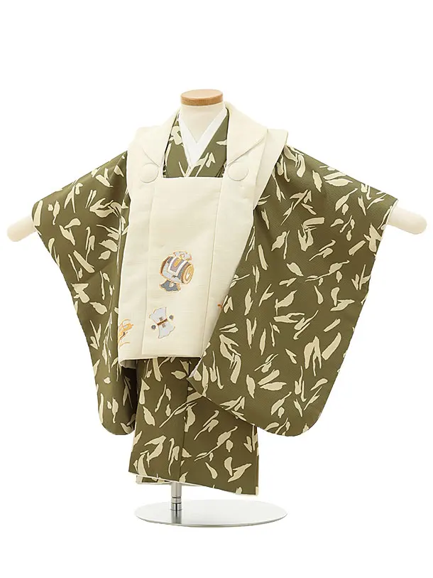 七五三レンタル(2歳男児被布)2991クリーム小槌刺繍×抹茶色変わり柄