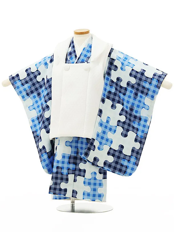 七五三(2歳男児被布)O052 【pitapita】 puzzle 白x青