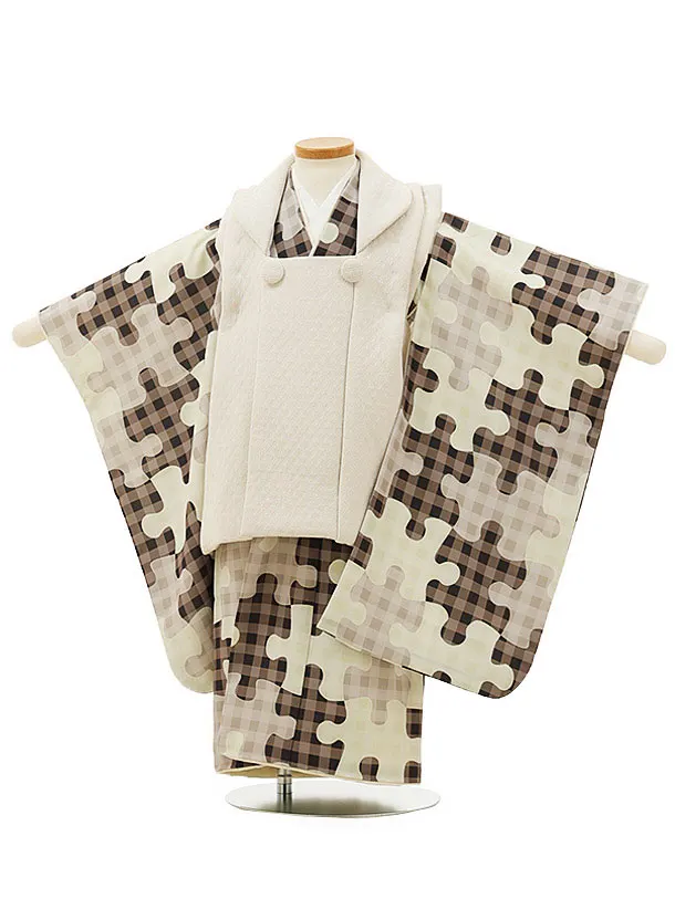 七五三(2歳男児被布)O053 【pitapita】 puzzle ベージュx茶