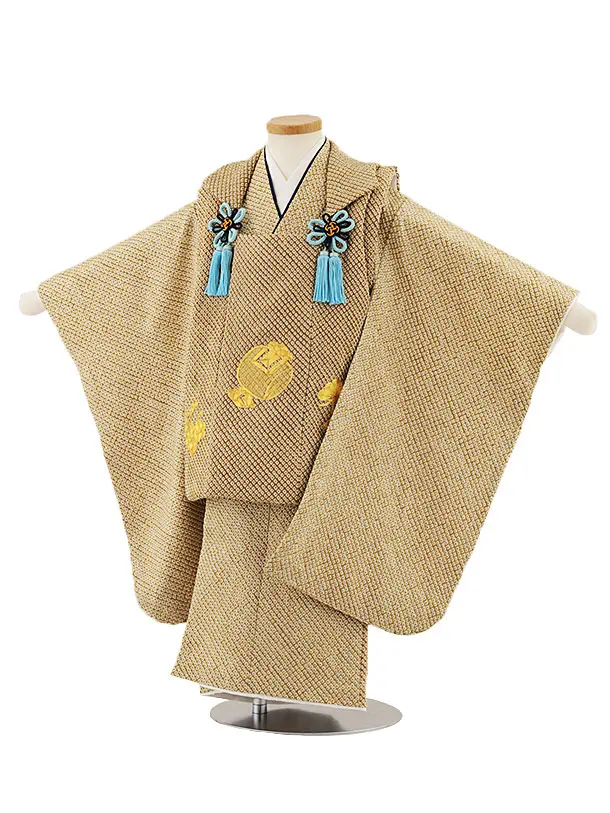 七五三(3歳男児被布)W585【正絹】ベージュ絞り金コマ×クリーム 吉祥文様