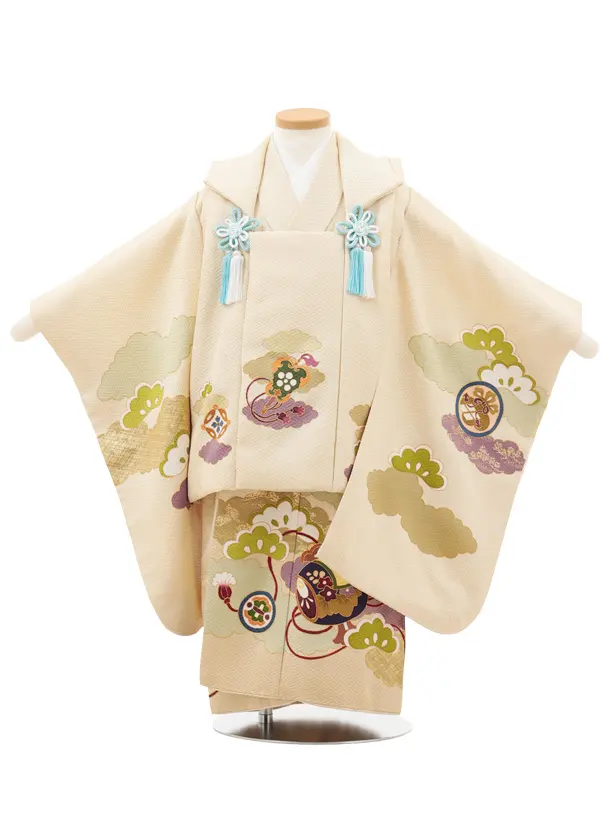 七五三(3歳男児被布)W590【正絹】藤井寛クリームベージュ 吉祥文様