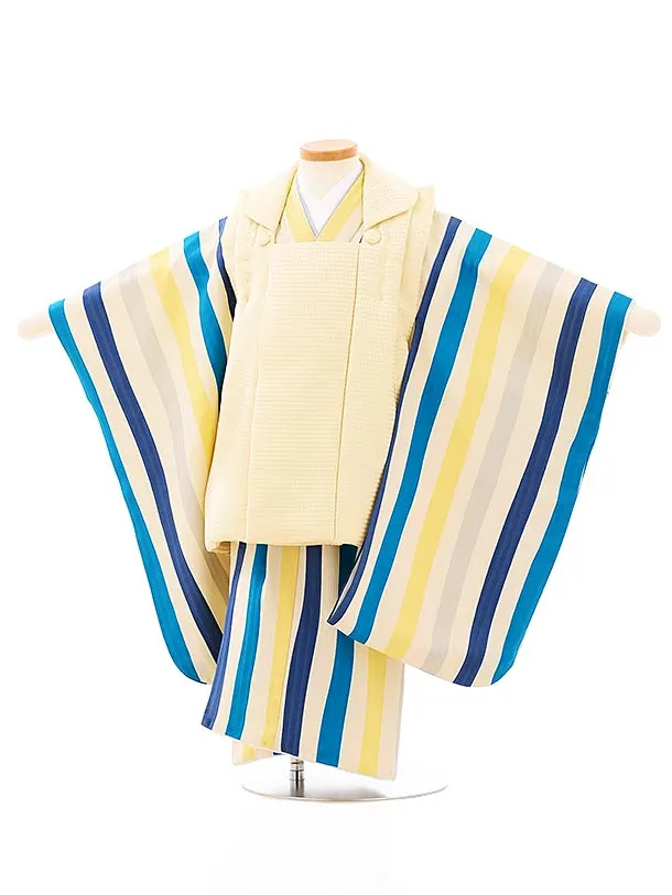 七五三レンタル(3歳男児被布)2679クリーム色xアイボリーストライプ