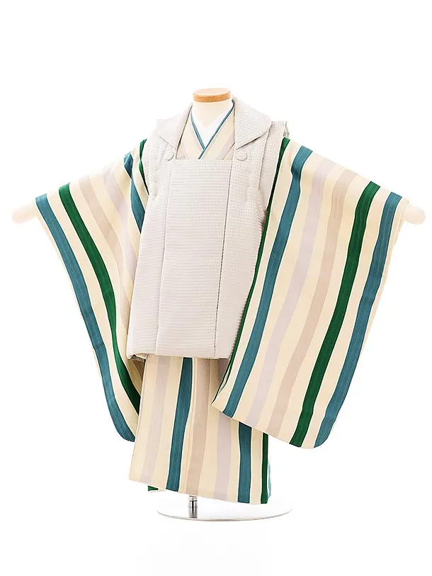 七五三レンタル(3歳男児被布)2680グレーxアイボリーグリーンストライプ