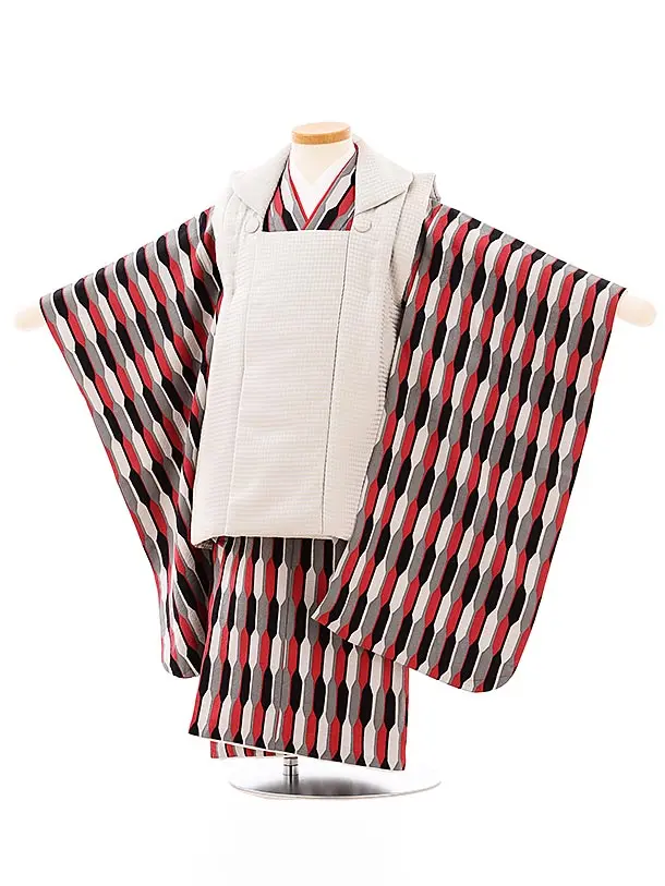 七五三レンタル(3歳男児被布)2681グレーx赤変わり柄