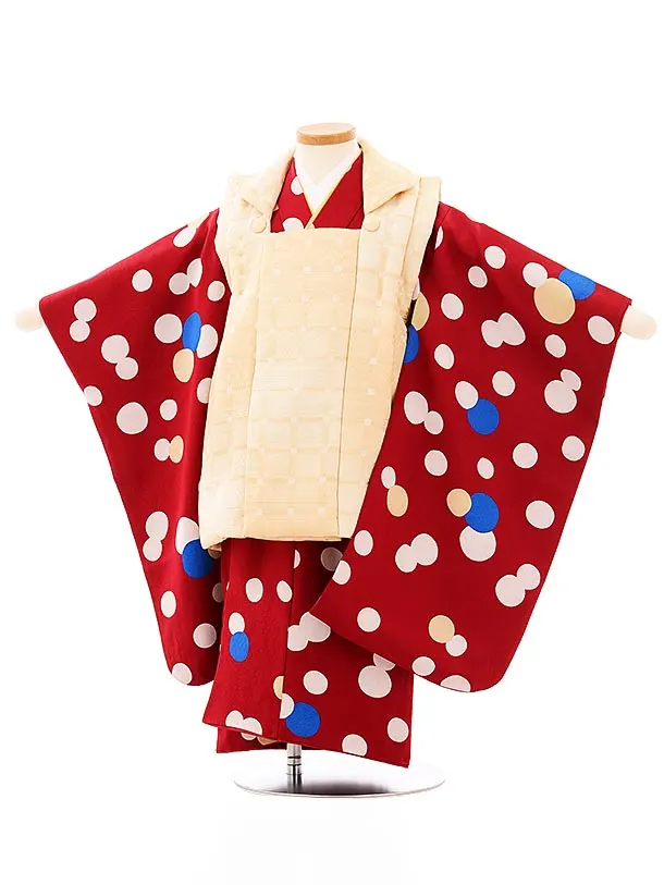 七五三レンタル(3歳男児被布)2682クリーム色ぼかしx赤ドット