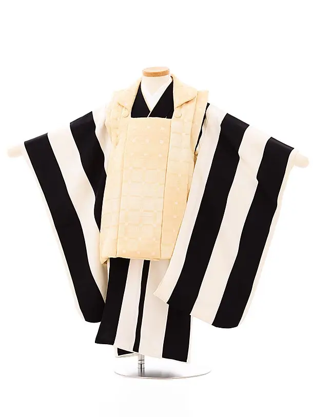 七五三レンタル(3歳男児被布)2684高級正絹クリーム色ぼかしx白黒太縞