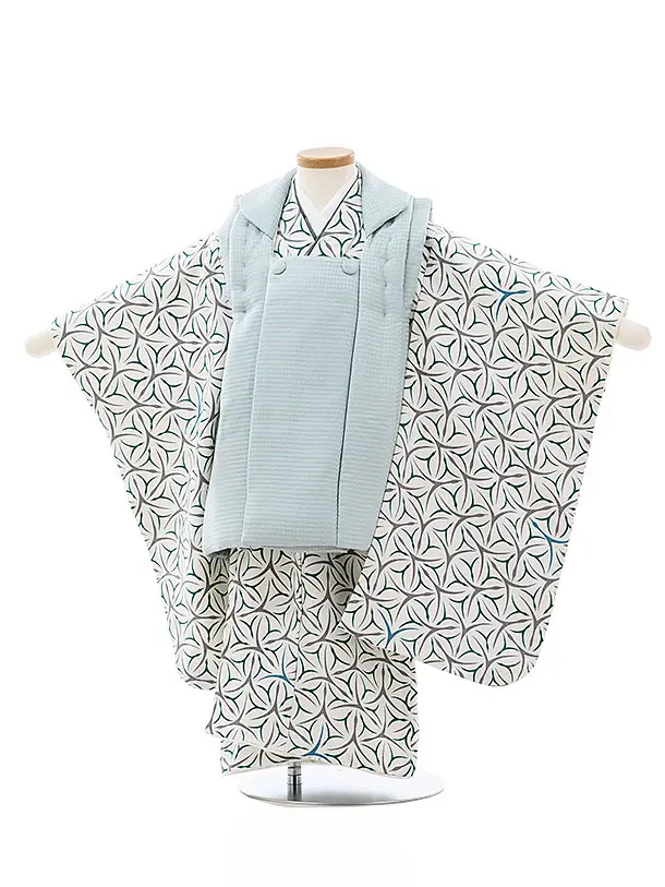 七五三レンタル(3歳男児被布)2728【正絹】パステルブルーx白地変わり柄