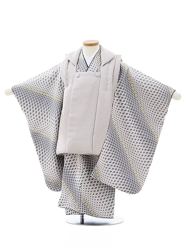 七五三レンタル(3歳男児被布)2730【正絹】グレーxグレー変わり柄