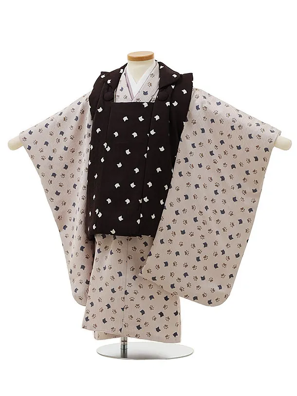 七五三(3歳男児被布)2951【正絹】こげ茶×パープルベージュ猫
