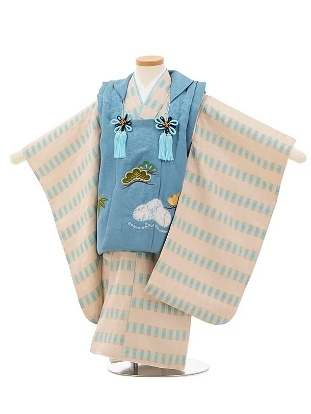 七五三レンタル(3歳男児被布)2352 正絹 クリーム色×水色 くるま