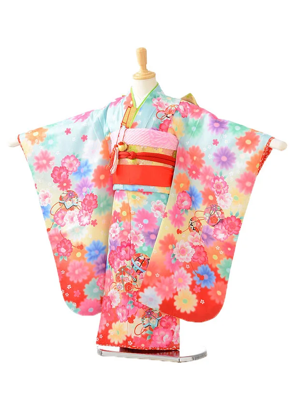 753レンタル(5歳女結び帯)0606水色裾赤花