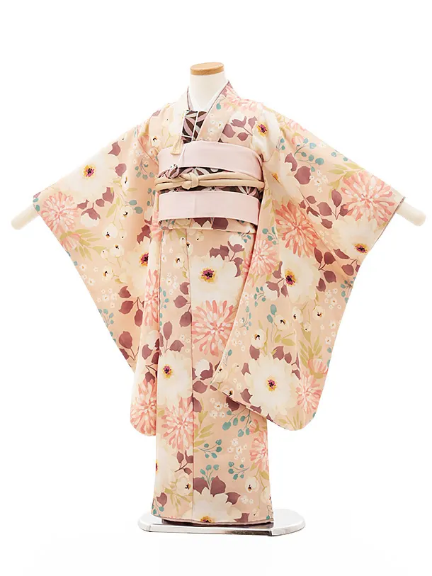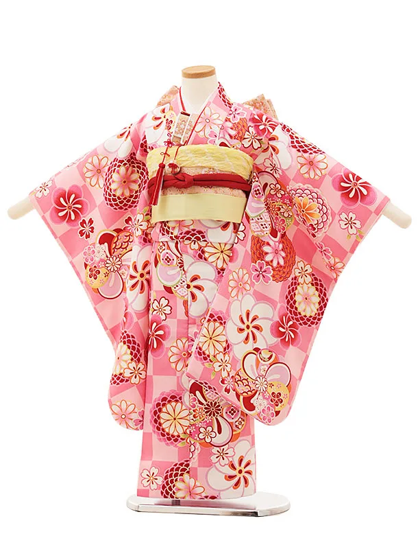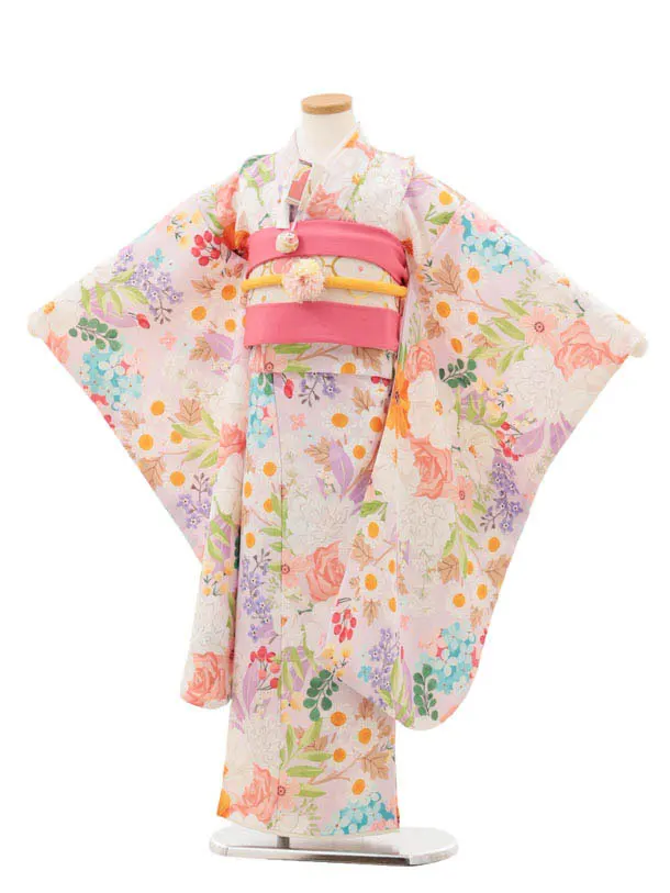 七五三レンタル(5歳女の子結び帯)0630 薄ピンクに花
