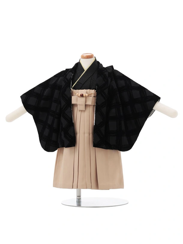 男児【1歳前後】 0186 黒地格子模様×ベージュ