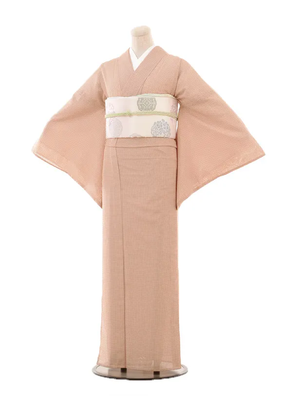 夏小紋 絽 591 ピンクベージュ格子(化繊)