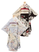 卒業式袴レンタル1220 九重 七宝に万寿菊黒xオフホワイト