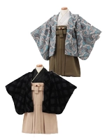 卒業式袴レンタル1233 Kamishibai ロココ花黒xカーキ