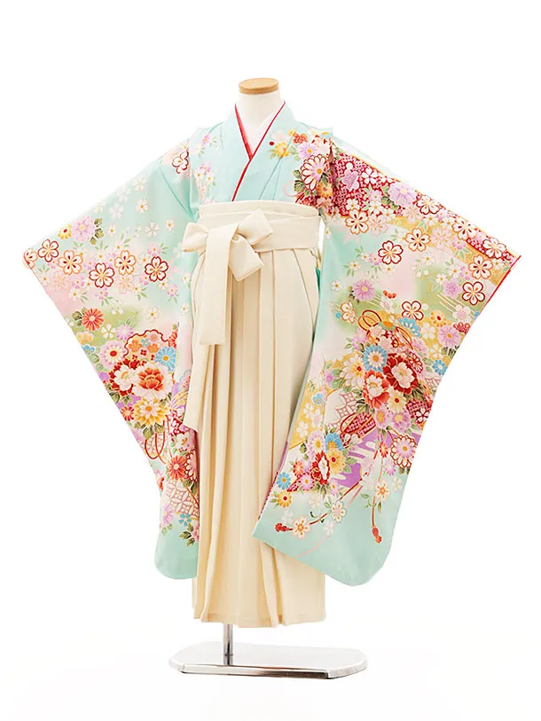 女児袴レンタル(7歳)Y388 ミント 薬玉 鞠×アイボリー袴