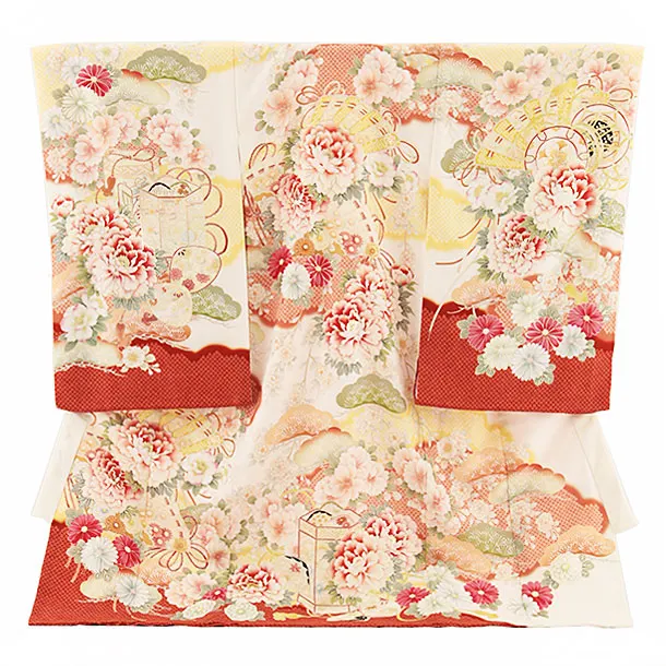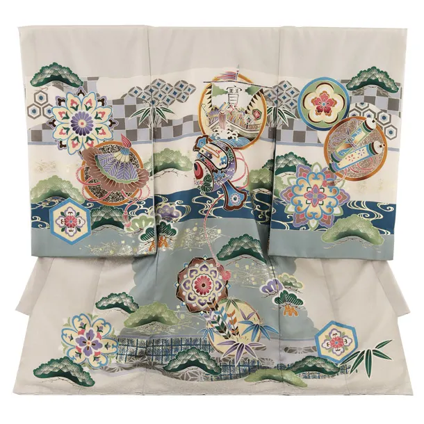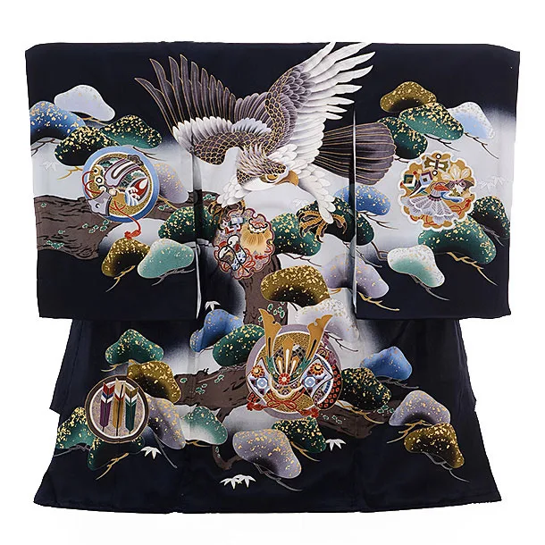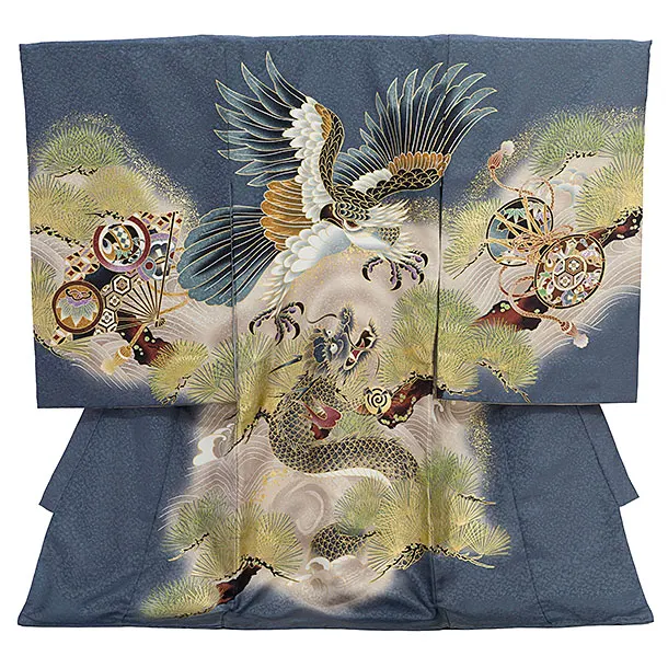 女の子は赤やピンク、模様は手毬(てまり)や小鼓(こづつみ)、花柄などのかわいらしい物が多いです。男の子は黒や青、緑などの色に鷹(たか)や兜(かぶと)などの凛々しい模様がたくさんあります。