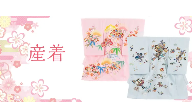 産着は生まれたばかりの赤ちゃんに着せる産着と、生まれて一か月前後のお宮参りで赤ちゃんに着せる華やかな柄の入った産着があります。