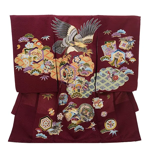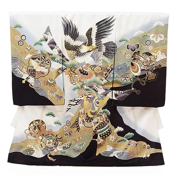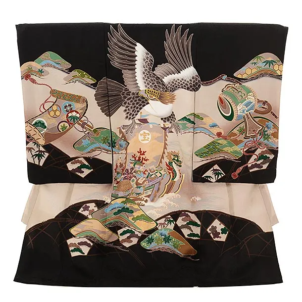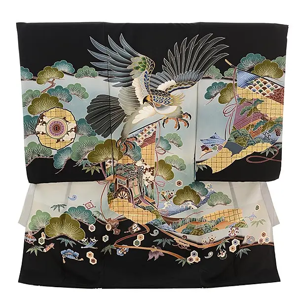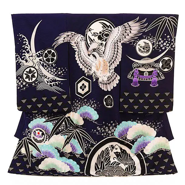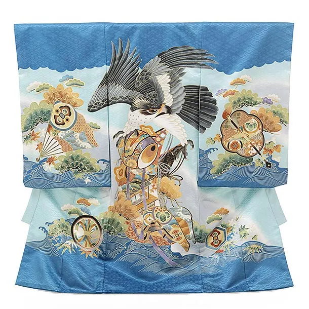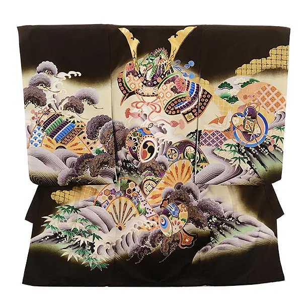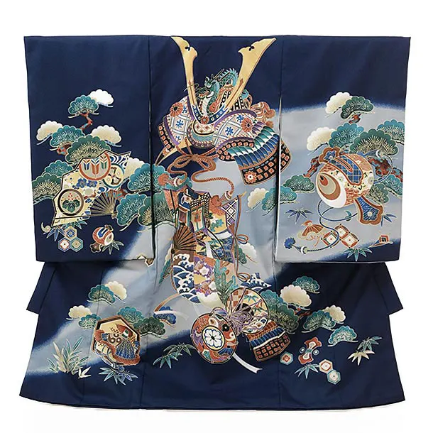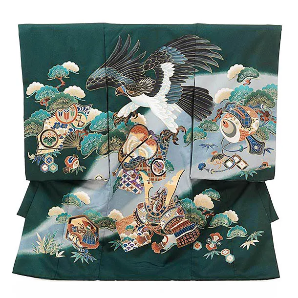 女の子は赤やピンク、模様は手毬(てまり)や小鼓(こづつみ)、花柄などのかわいらしい物が多いです。男の子は黒や青、緑などの色に鷹(たか)や兜(かぶと)などの凛々しい模様がたくさんあります。