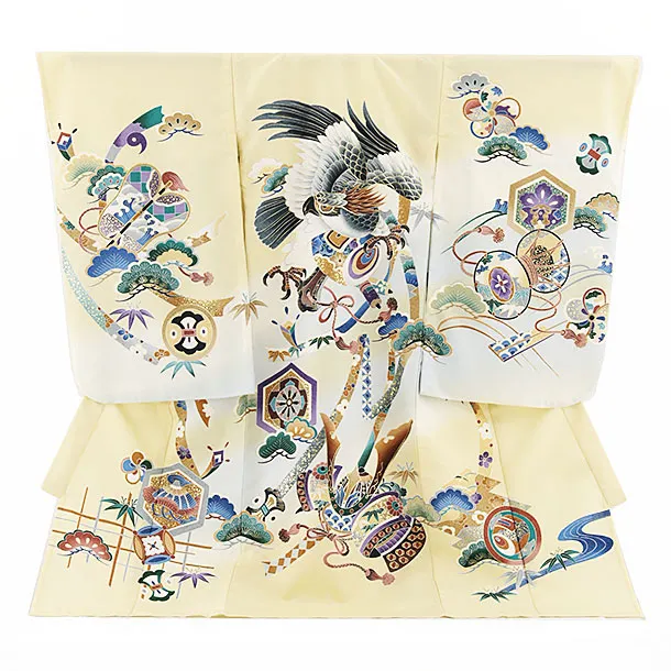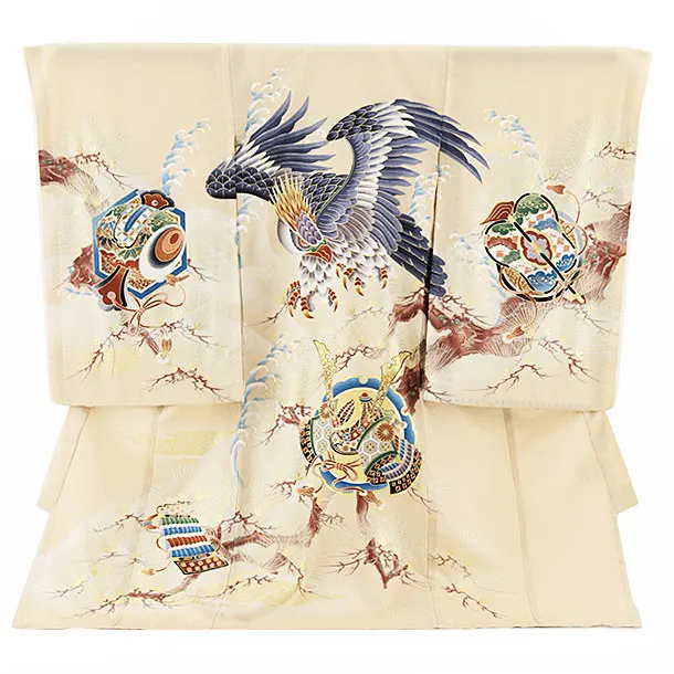 夏用 男児産着 お宮参り 2478 単衣 クリーム地 鷹に吉祥文様