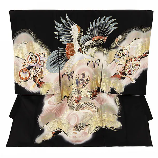 夏用 男児産着 お宮参り 2434 単衣 黒地 鷹に龍