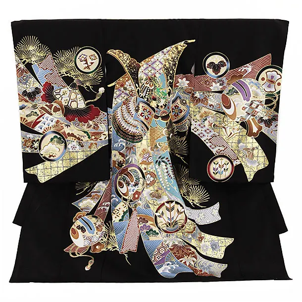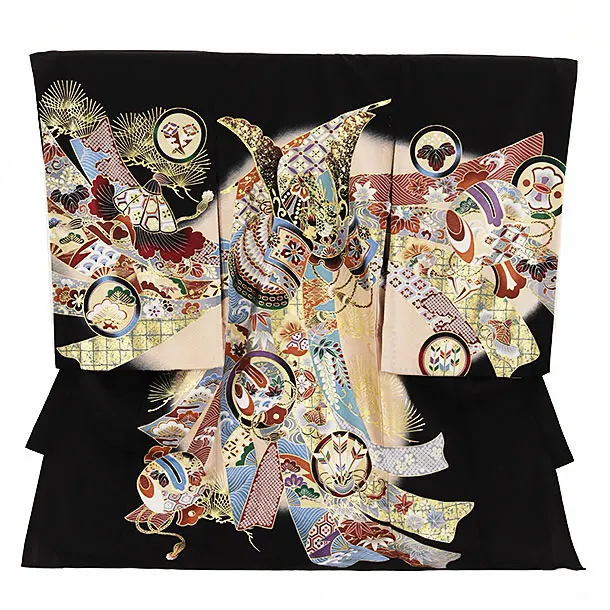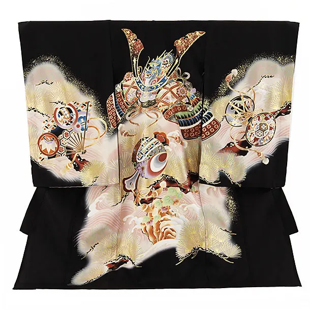 夏用 男児産着 お宮参り 2469 単衣 黒地 兜に熨斗