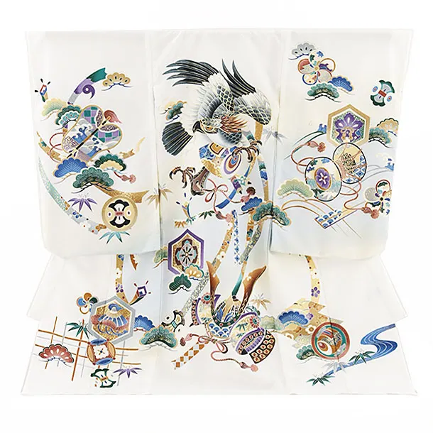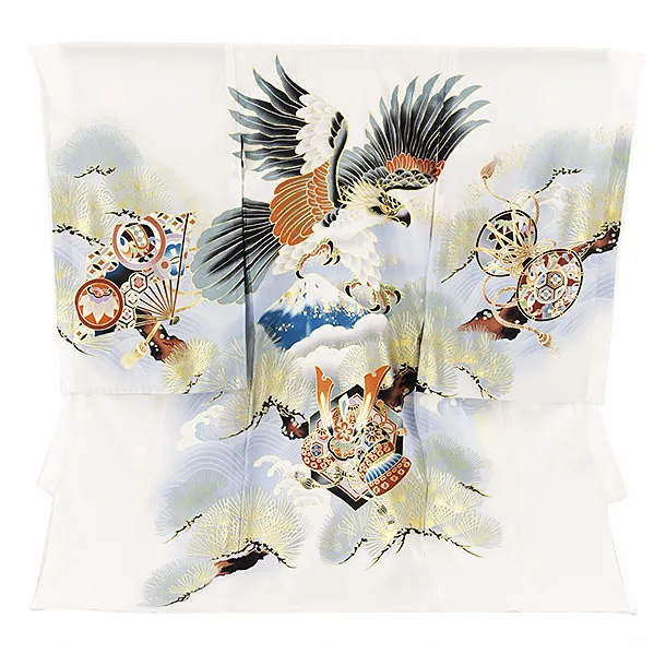 夏用 男児産着 お宮参り 2477 単衣 白地 鷹に吉祥文様