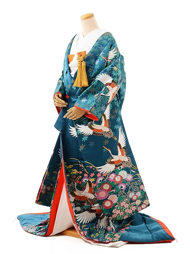 色打掛レンタル904ターキーブルー地白鶴と楓
