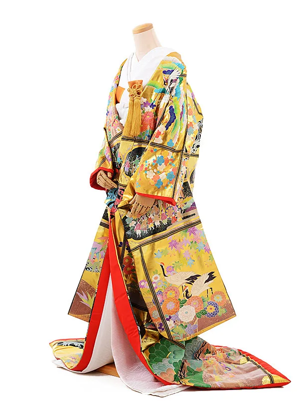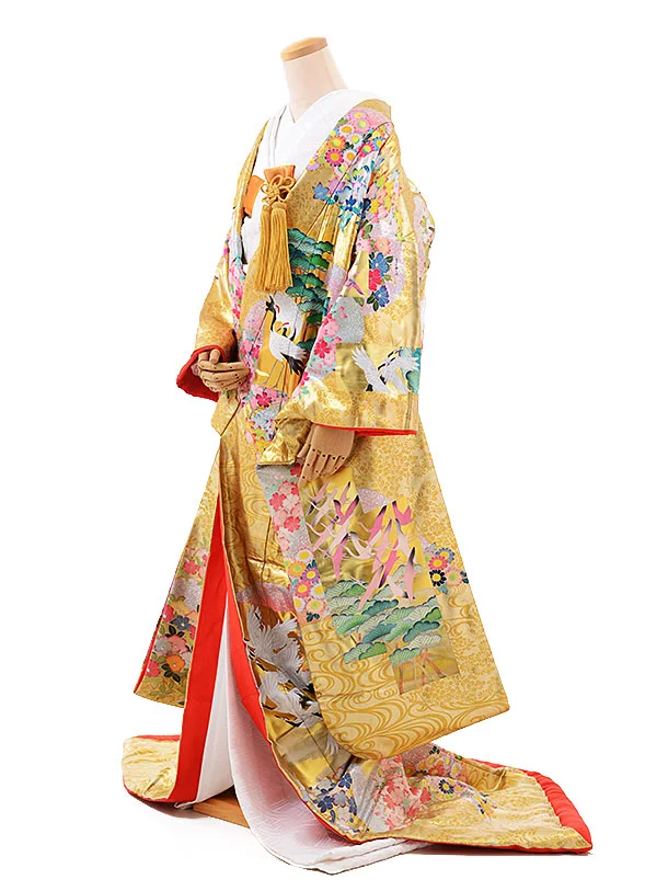 色打掛レンタル985u竹峰刺繍黄色地華鶴