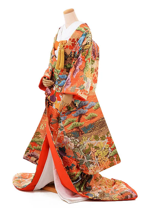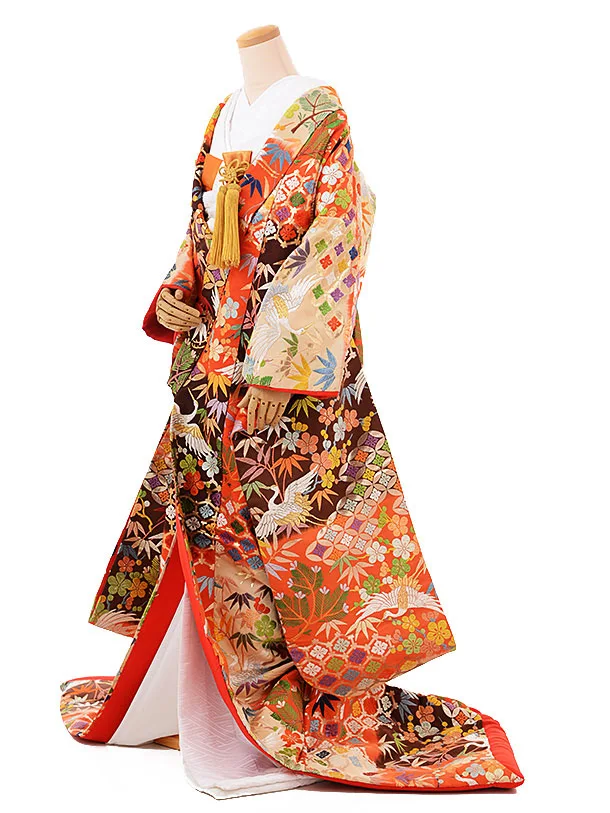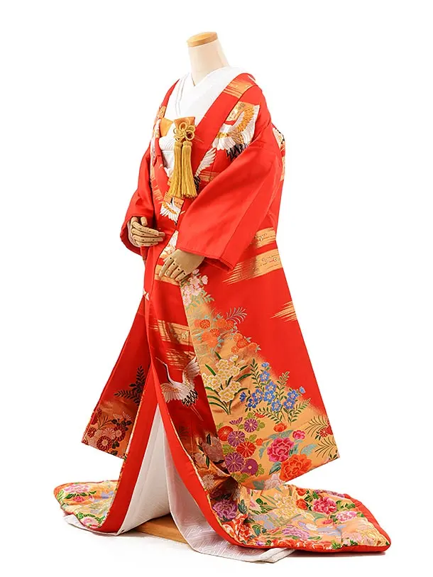 色打掛レンタルE172 赤地 色紙に飛鶴