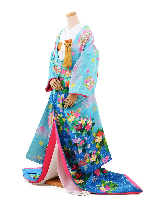 色打掛レンタルE163 水色 グリッター 鳳凰に花